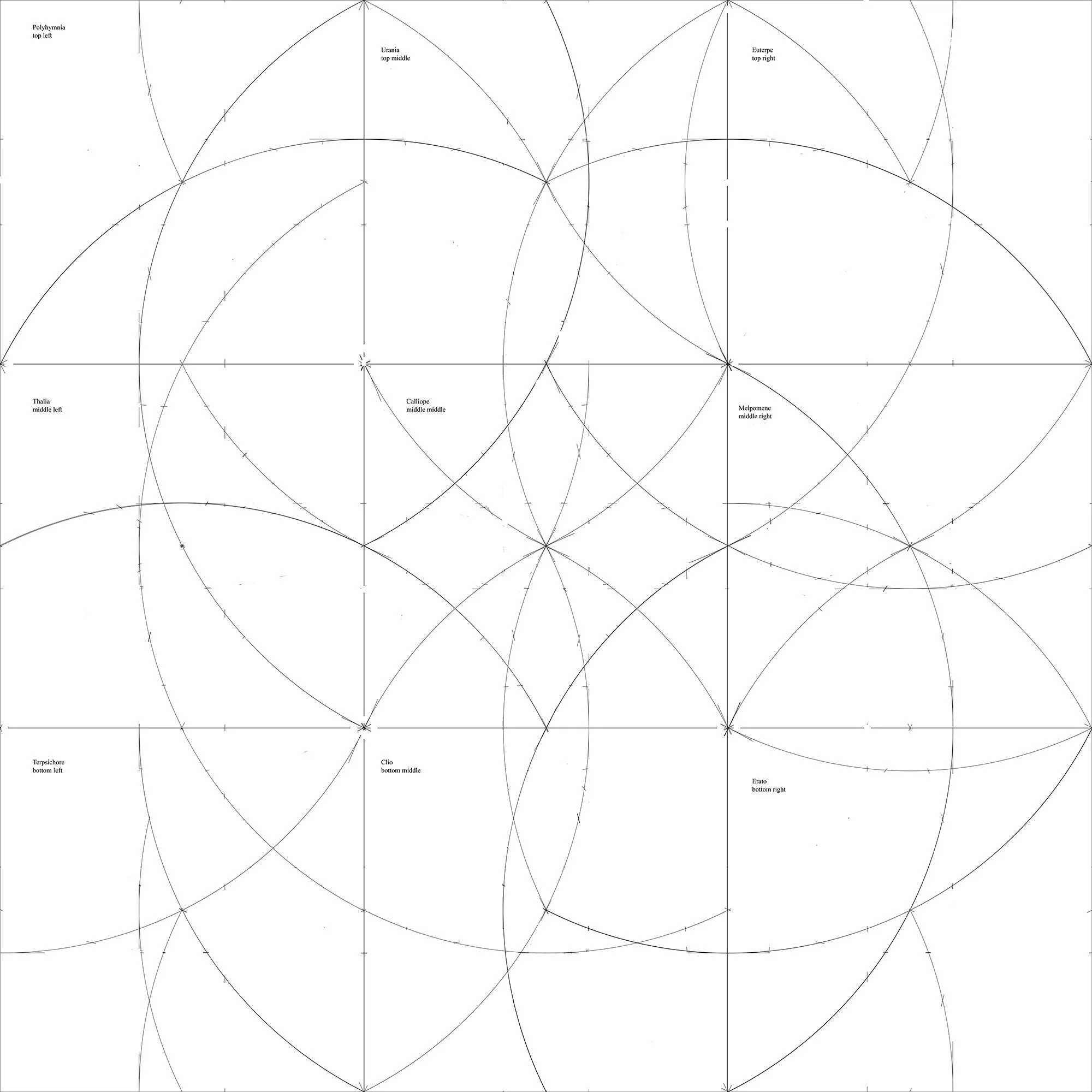 From a geometric standpoint, while these pieces were all square, I wanted to primarily use circles for the basis of the work. I designed my nine pieces as part of a unified grid, so that the circular forms would flow from one to the other, even though they wouldn’t be displayed this way.