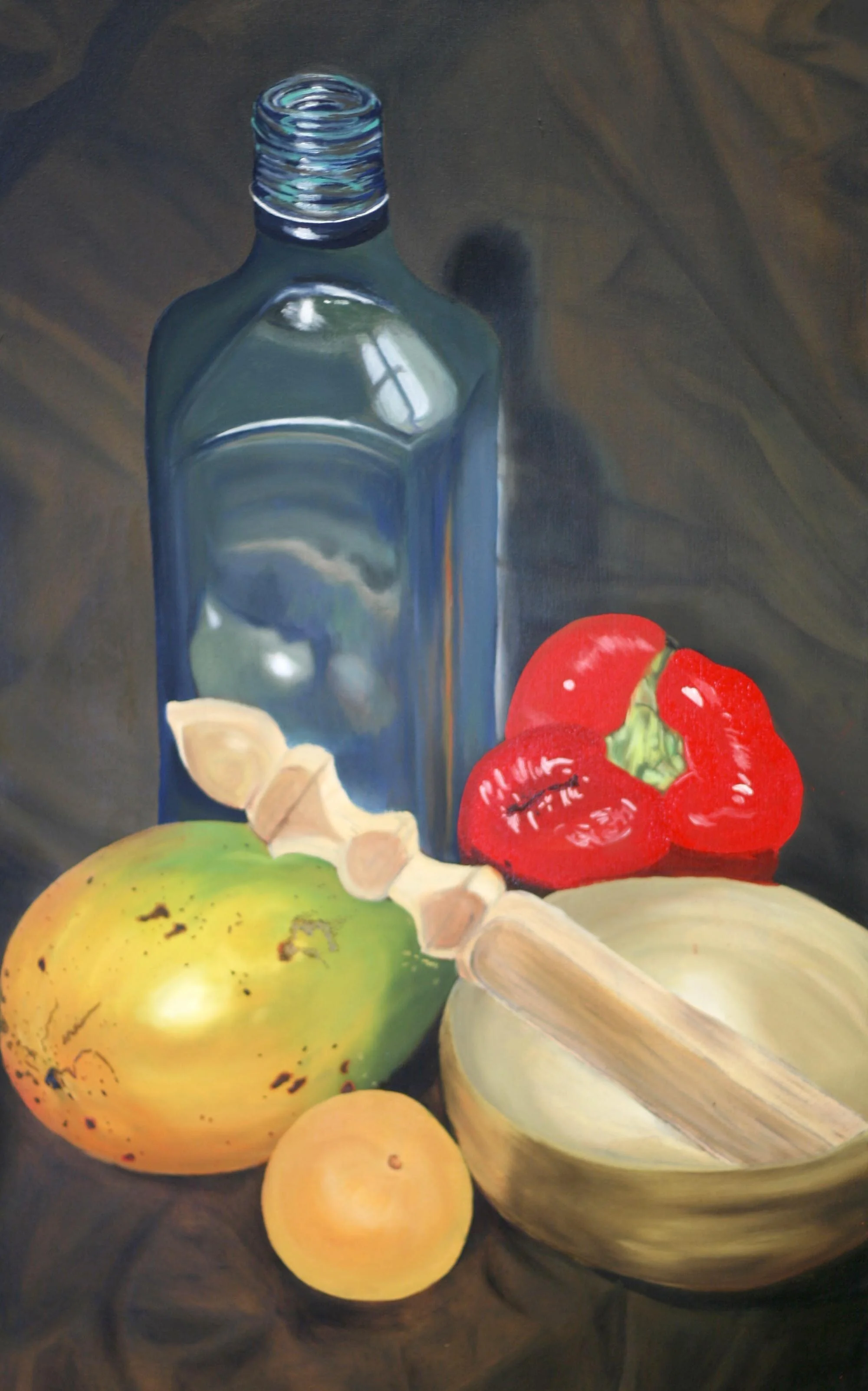 In Beginning Painting, students used oils to do traditional still life, photorealism, and abstraction. We also covered the basics of color theory.